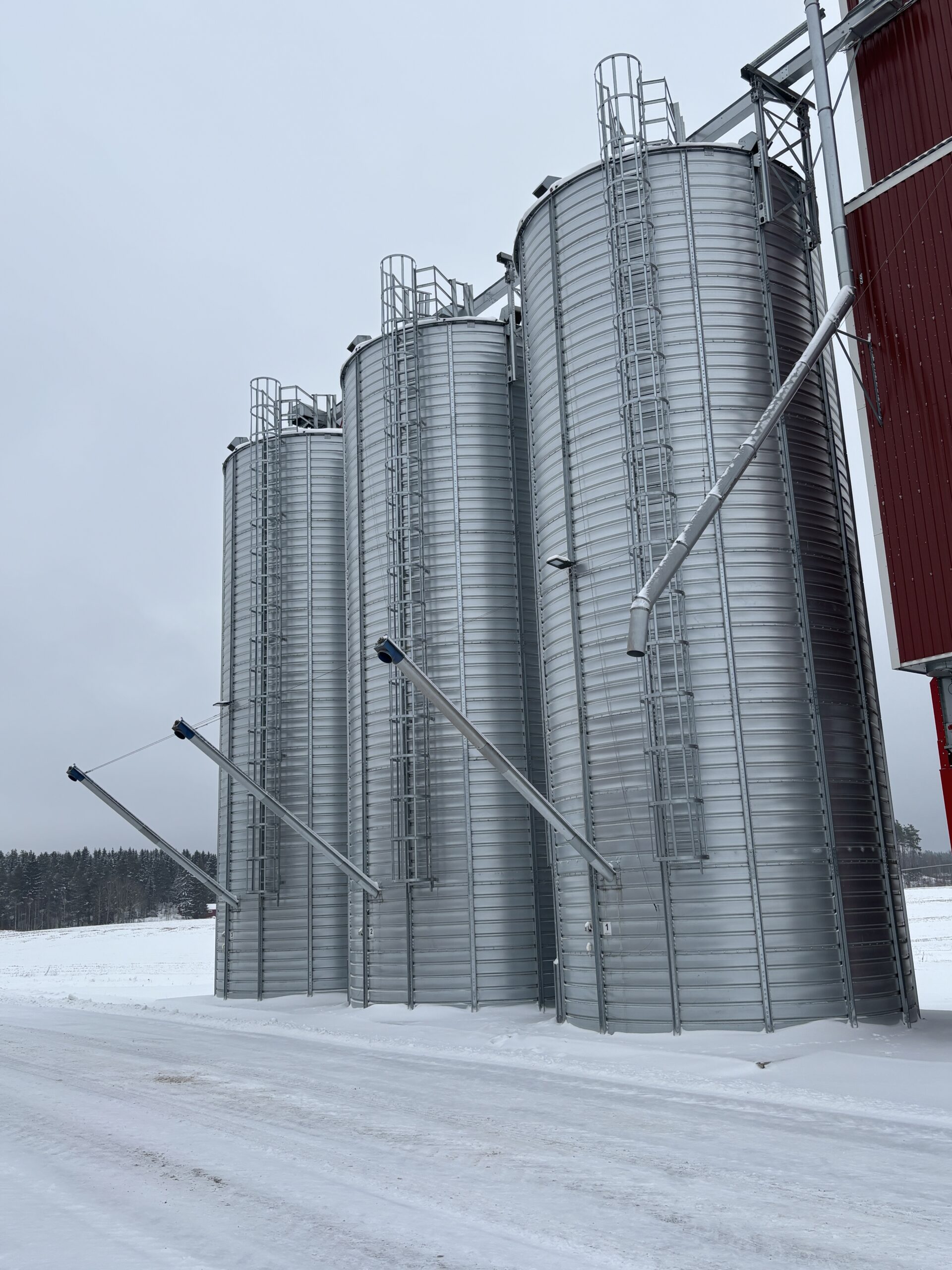 Jussi-Tuotteen ruuvikuljetin siirtää viljan siiloon — ja siilosta